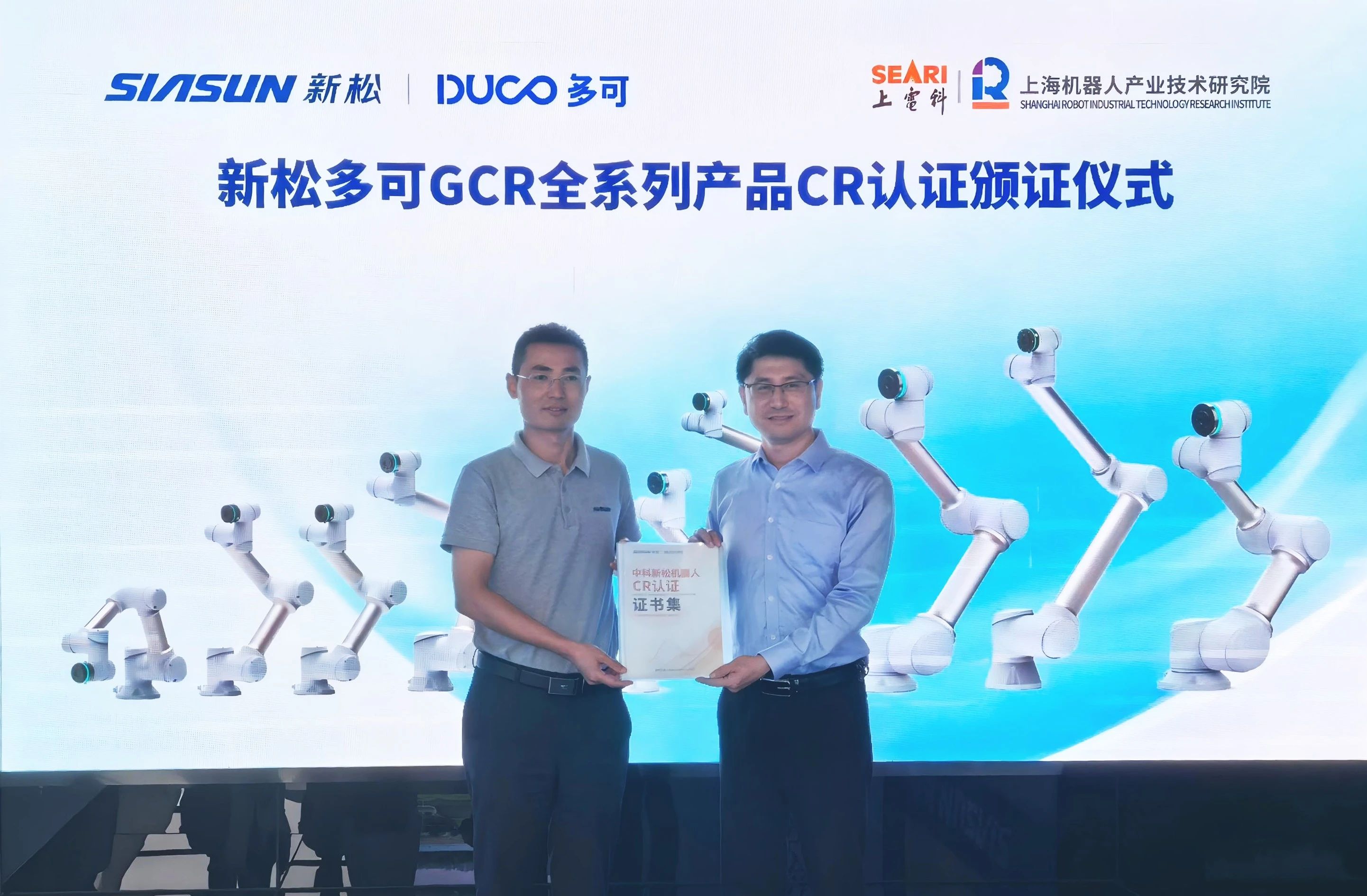 2025 年 5 月 27 日,新松多可 GCR 全系列产品 CR 认证颁证仪式在中科新松有限公司隆重举行。此次认证标志着新松多可 GCR 全系列产品通过CR认证并在功能安全方面达到了 L5 级别,为机器人功能安全的技术发展树立了新标杆。