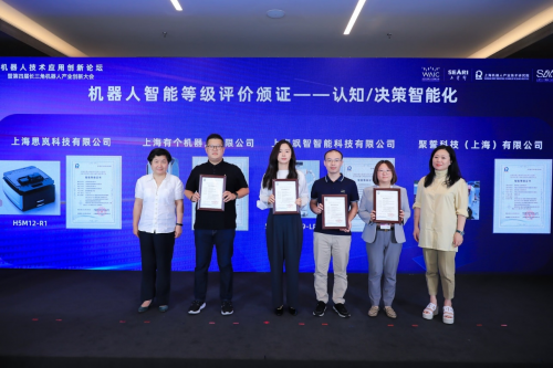 上海思岚科技有限公司、上海有个机器人有限公司、上海飒智智能科技有限公司和聚誓科技(上海)有限公司获得认知/决策智能化评价证书。