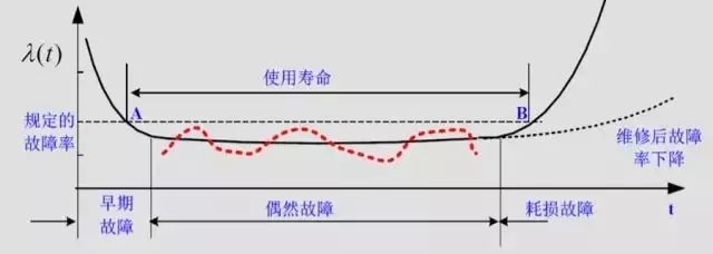 曲线的第三段,是表达低水平故障率保持到多长的规律。一般而言,保持到预期的使用寿命,过了使用寿命故障率又急剧增高。这是统计规律表现出来的。