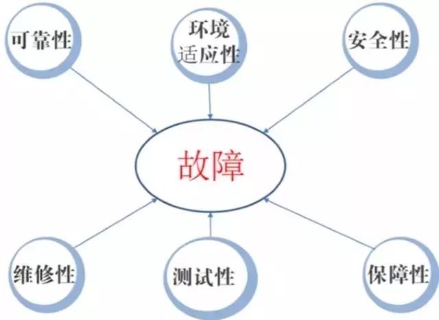 跟故障相关的产品的设计特性,主要包含六个方面:可靠性、维修性、测试性、保障性、环境适应性和安全性。